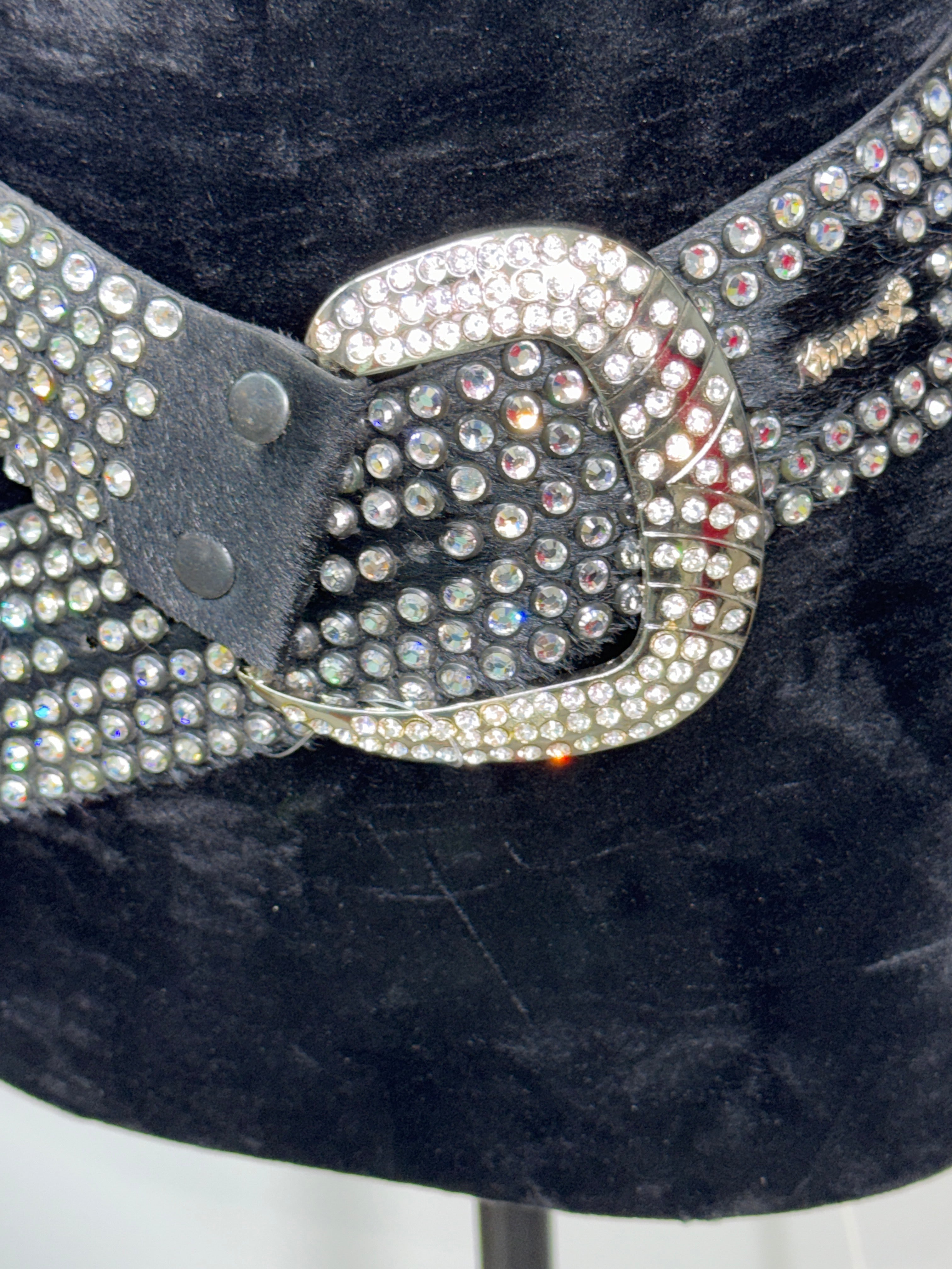 Make a bold statement with this one-of-a-kind Vintage Kippy 7-row black hairhide belt, measuring a striking 2.25 inches wide. Its...