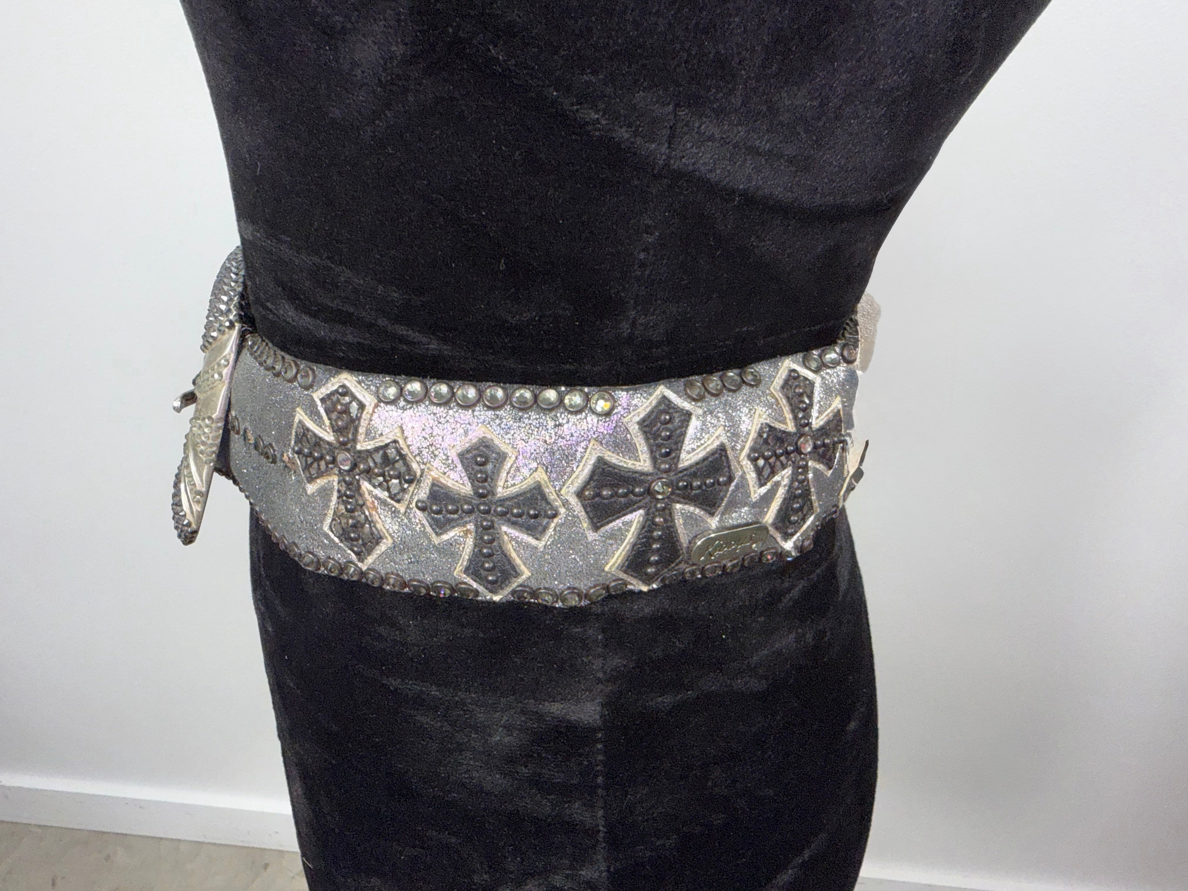 Sale -44% Product form Vintage Kippy belt: Cross on Silver Lame' leather size 34 K $525.00 $295.00 Quantity Add to cart Guaranteed secure & safe checkout.