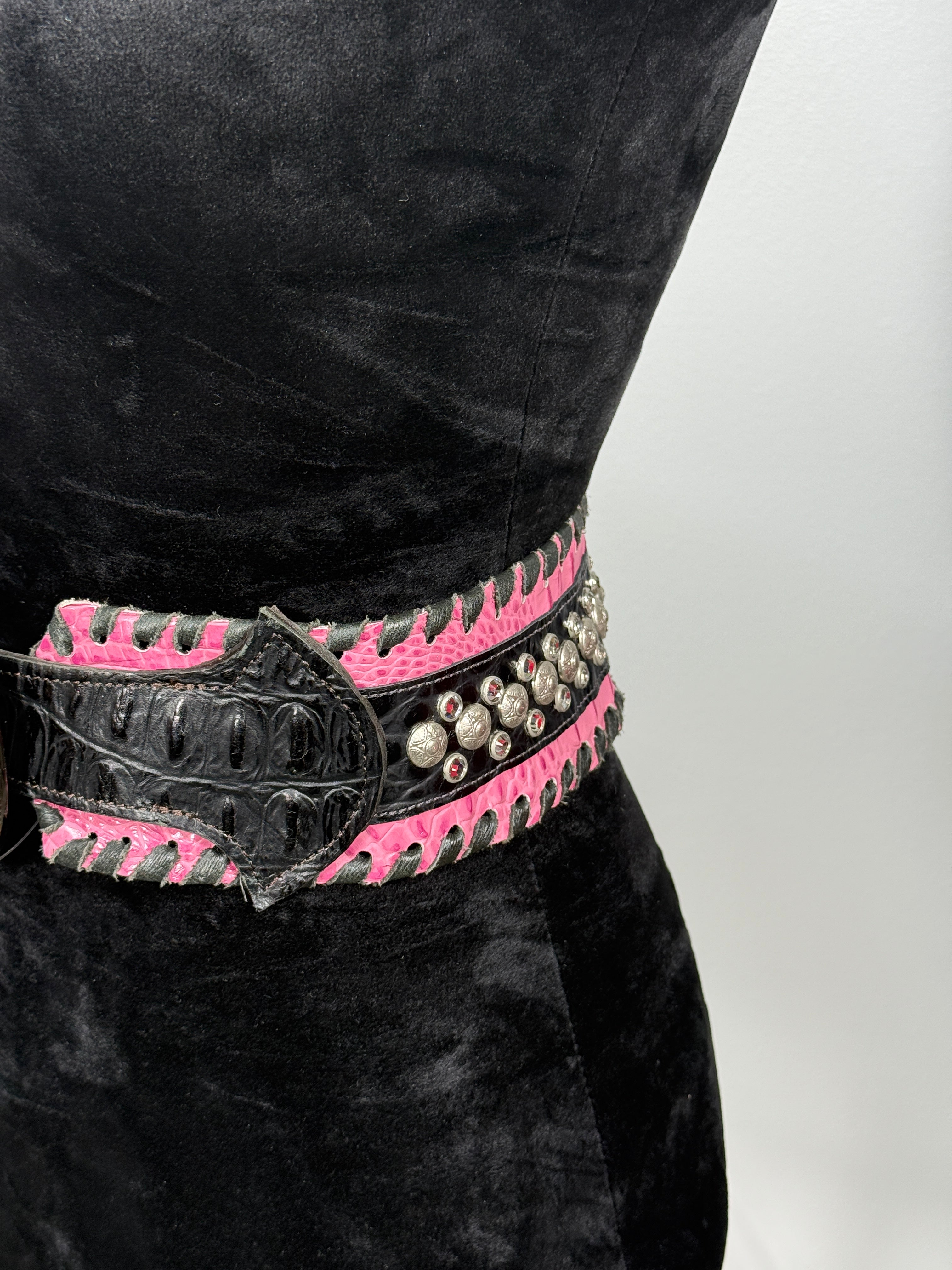 Vintage Kurtman belts:3" wide/ pink croc/ 42" T